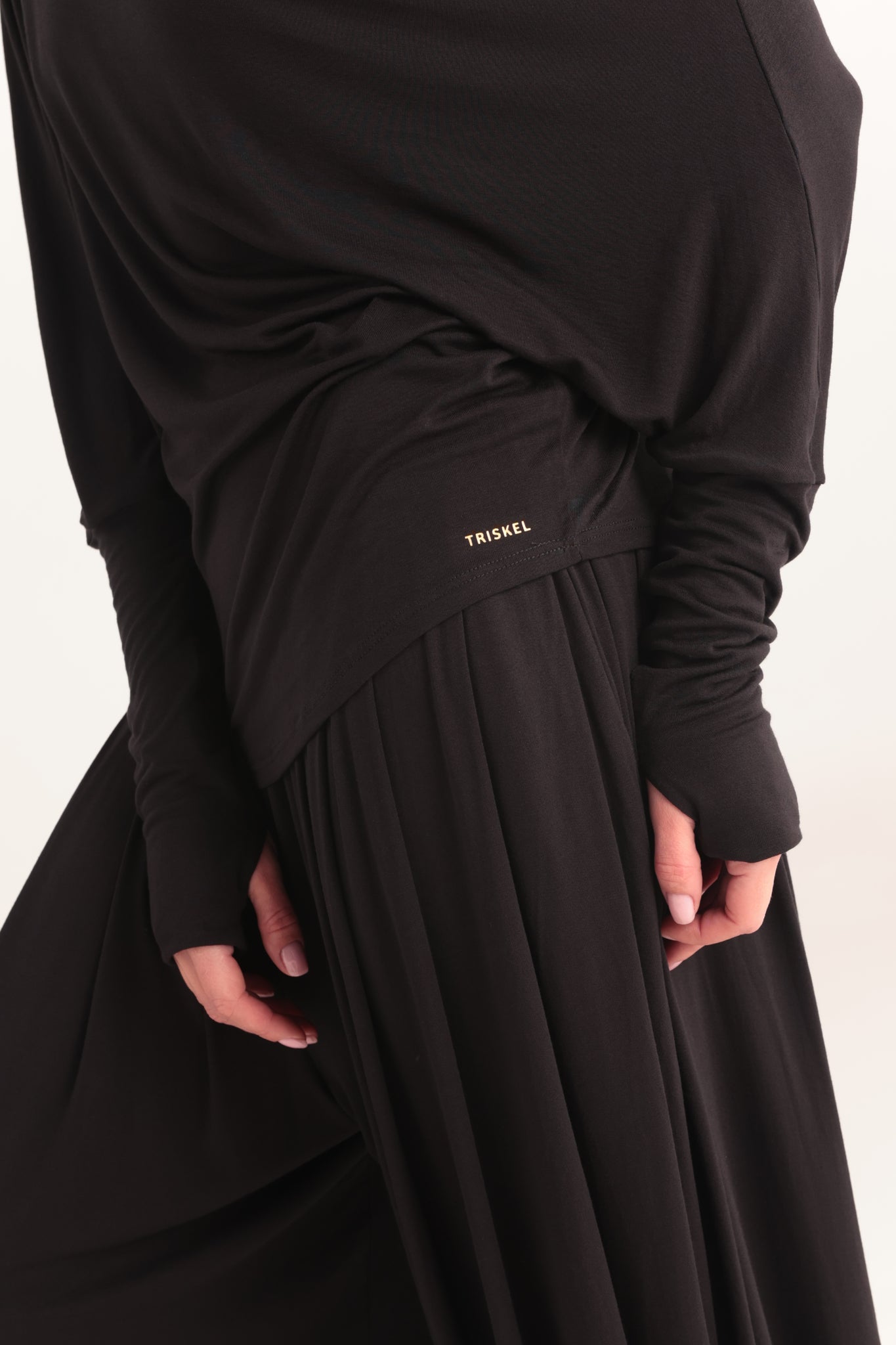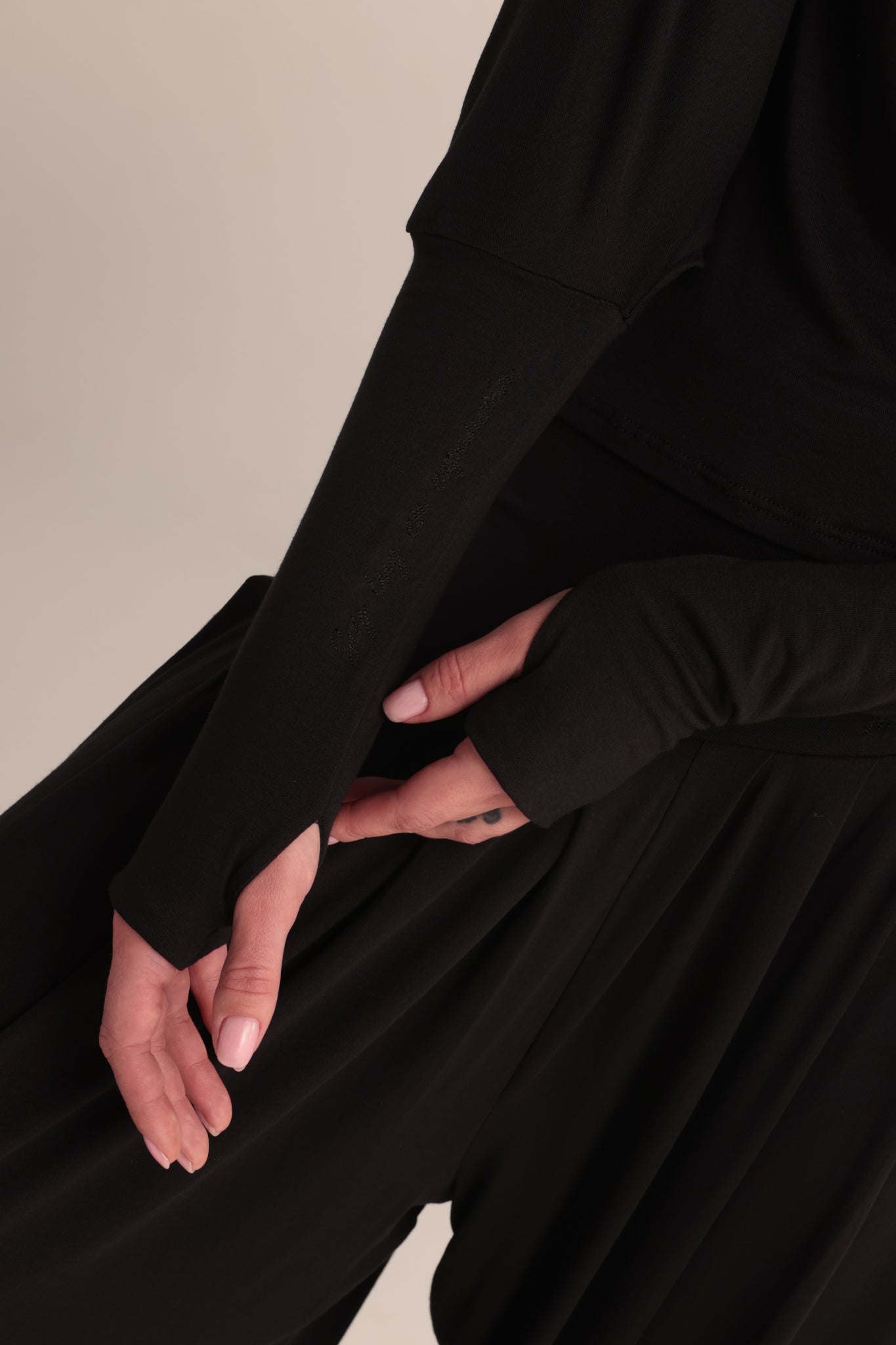 Asymmetrical cut and fitted sleeves, embroidered with the phrase “I am expanding light,” as a reminder that we are made of stardust — that infinity is not outside, but deep within you. When you wear these pieces, you’re not only covering yourself in comfort and beauty, you’re also dressing the cosmic truth of your being: you are the universe in motion, a living constellation, embodied light.